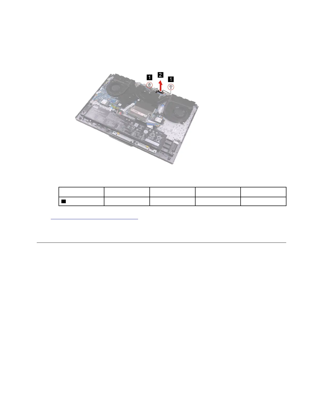 Step 1. Remove two screws (1) and remove the DC-in bracket (2).