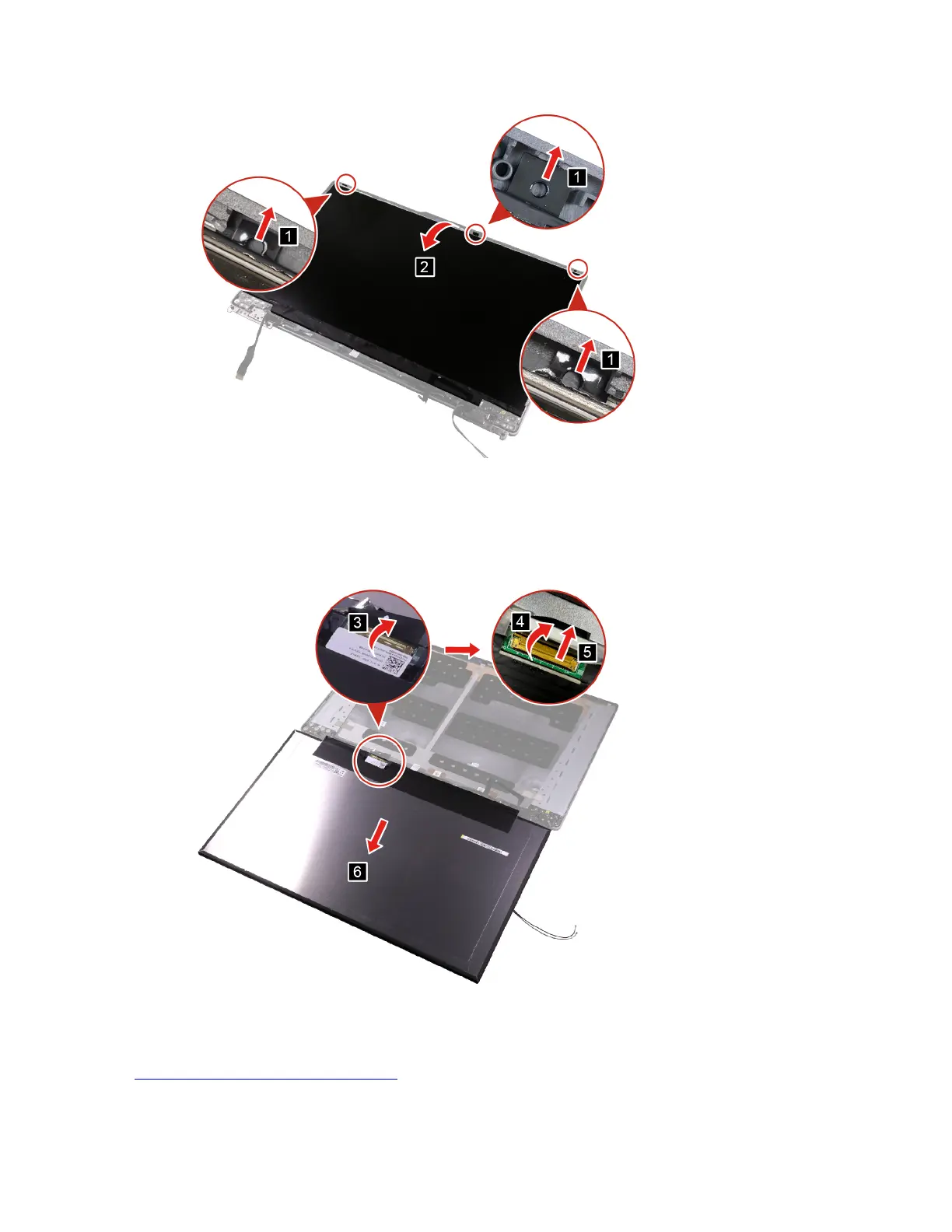 Step 2. Peel back the mylar (3), disconnect the EDP cable (4 and 5), and remove the LCD panel (6).