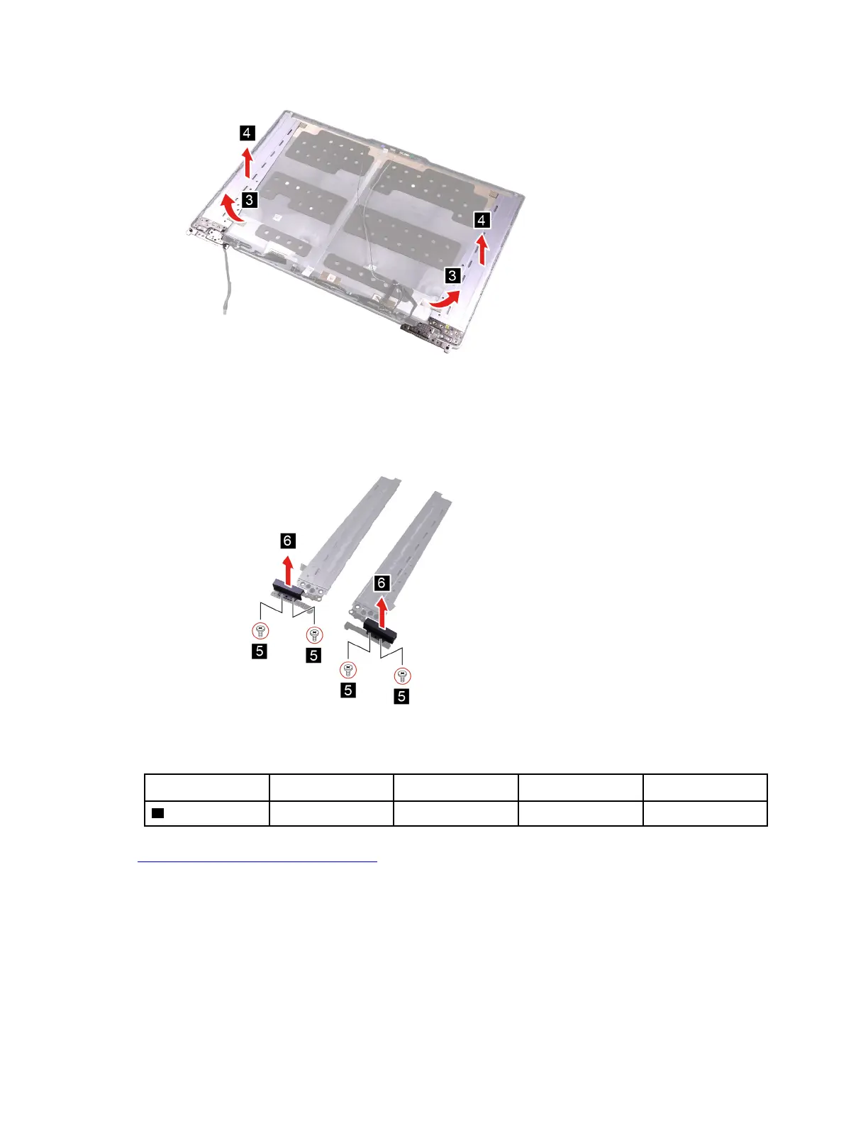 Step 3. Remove four screws (5) and remove the hinge caps (6).