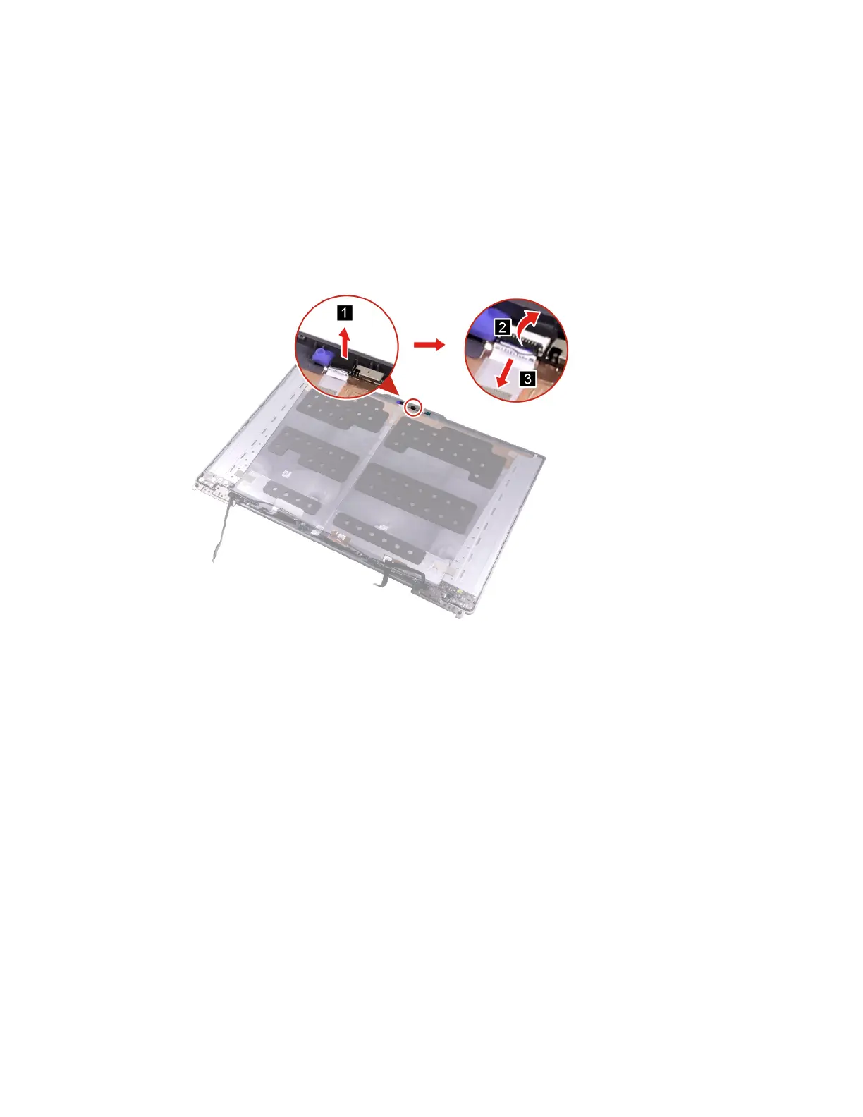 Step 1. Remove the camera sponge (1) and disconnect the camera cable from the camera board (2 and 3).