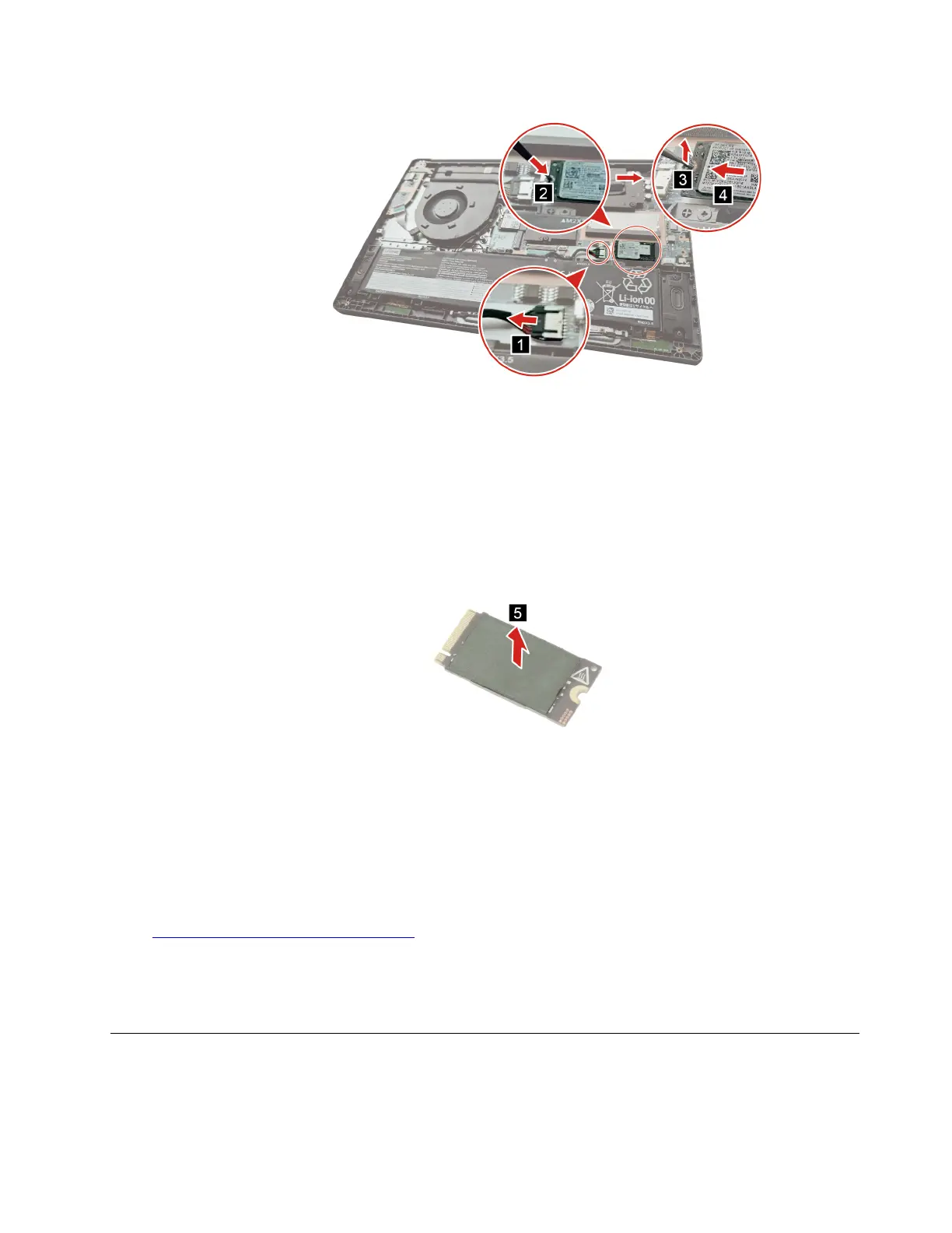 Figure 12. Disconnect the battery pack cable and remove the 2242 solid-state drive