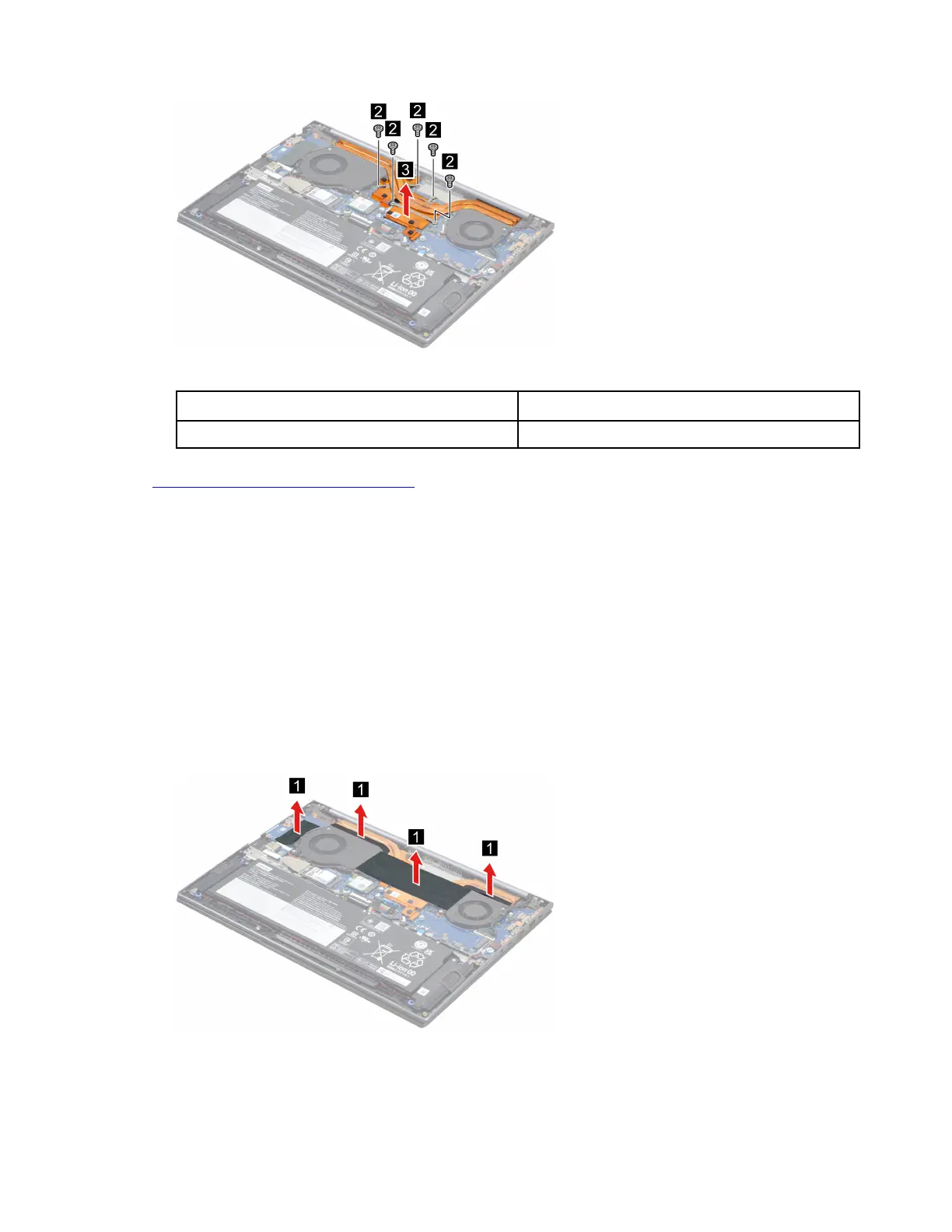 Step 3. Disconnect the fan cables from the system board. Remove five screws and then remove the fans.