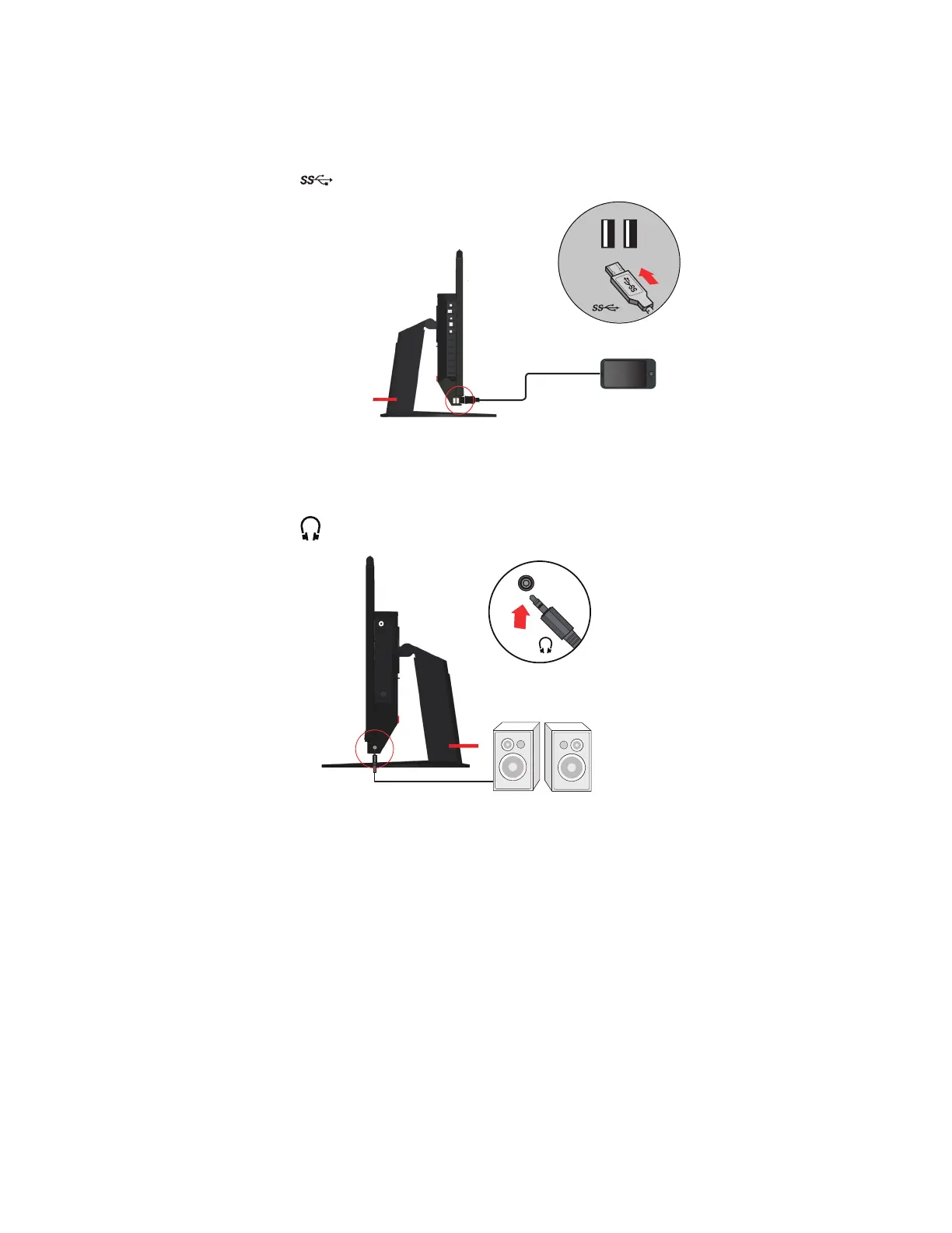 6. Connect the speaker’s audio cable and audio jack of monitor to trangesfer audio source