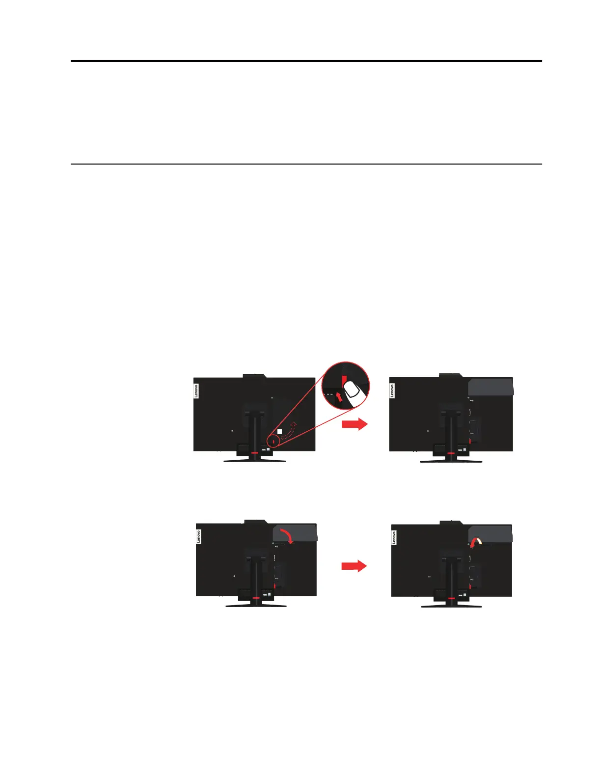 1. Press the cable cover 1 to open it. Then, pivot the cable cover as shown to the open