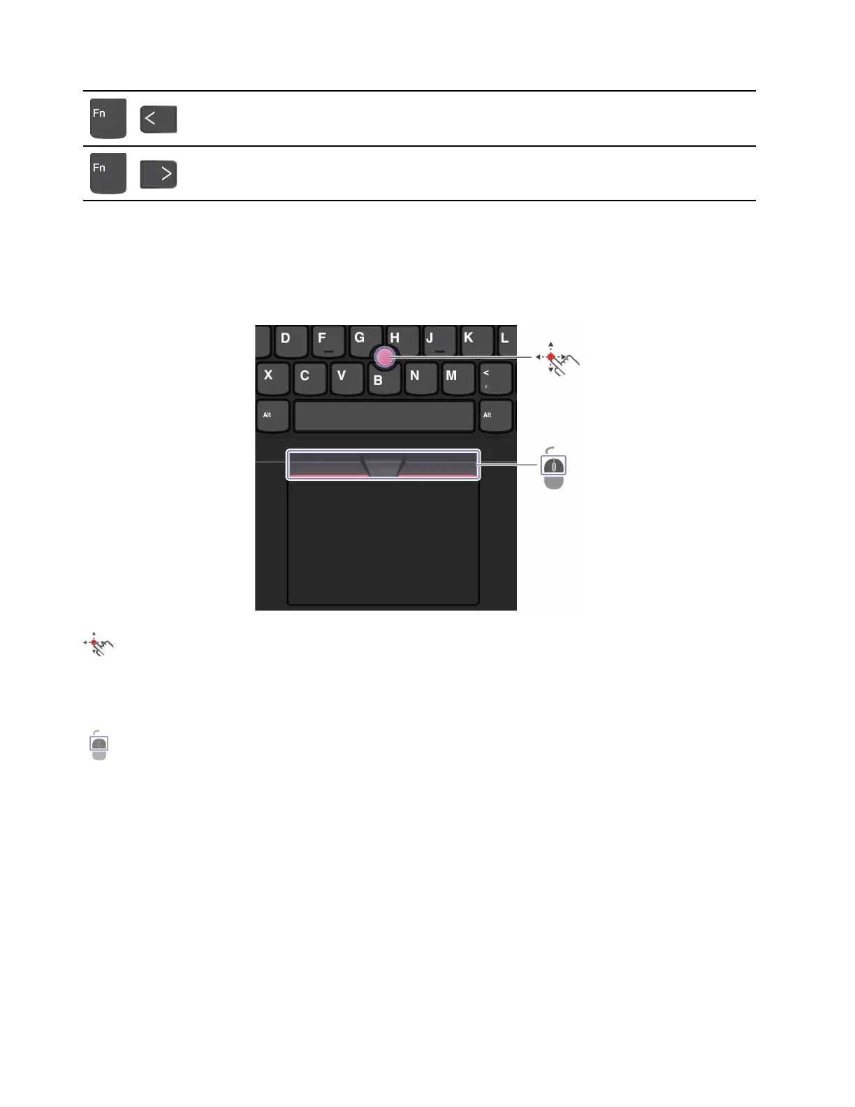 Press and hold the dotted middle button while using your finger to applying pressure to the pointing stick in