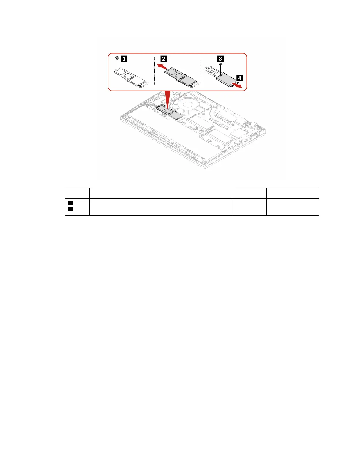 • There might be thermal pads on the top and under the bottom of the M.2 solid-state drive. When replacing