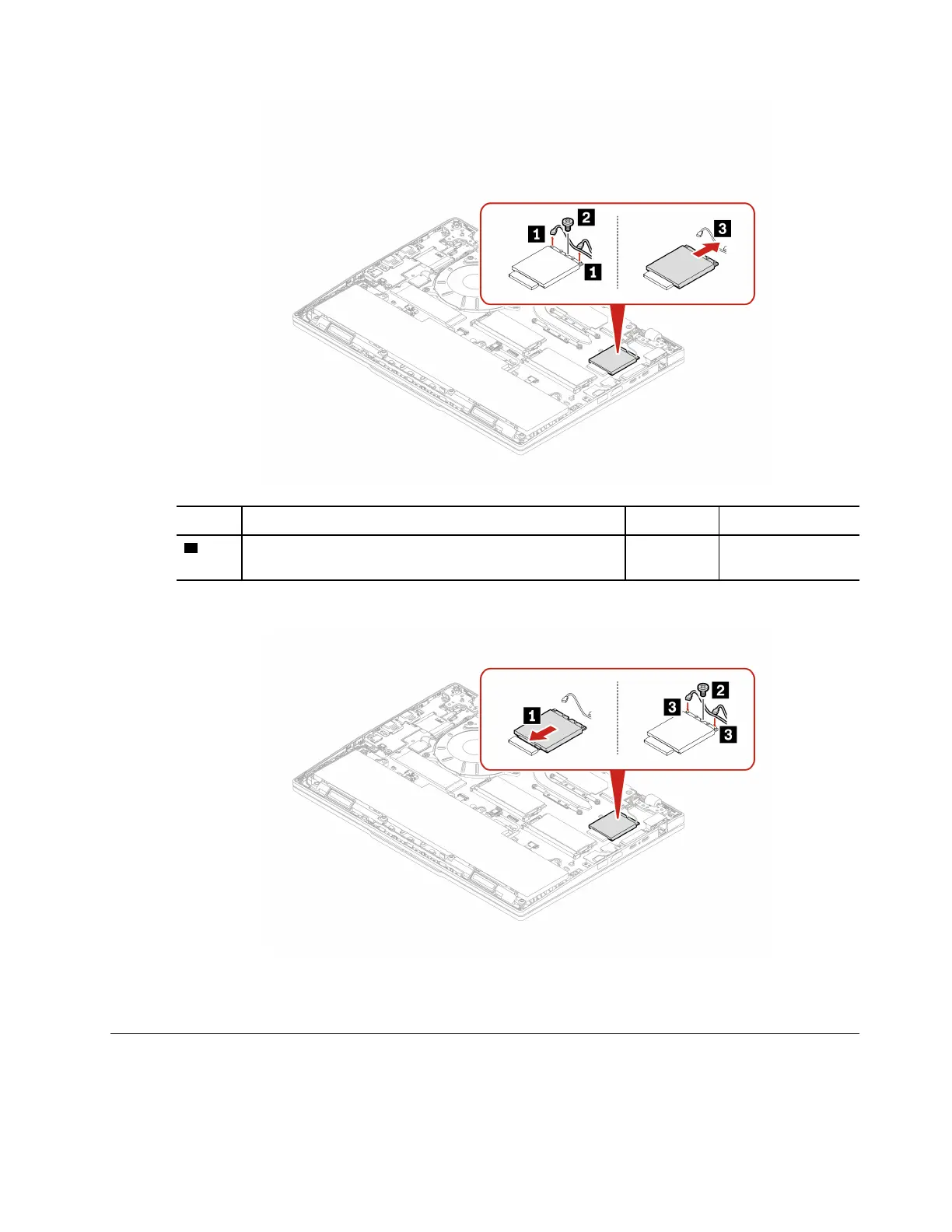 Note: When installing the wireless WAN card, ensure that you connect the orange cable to the