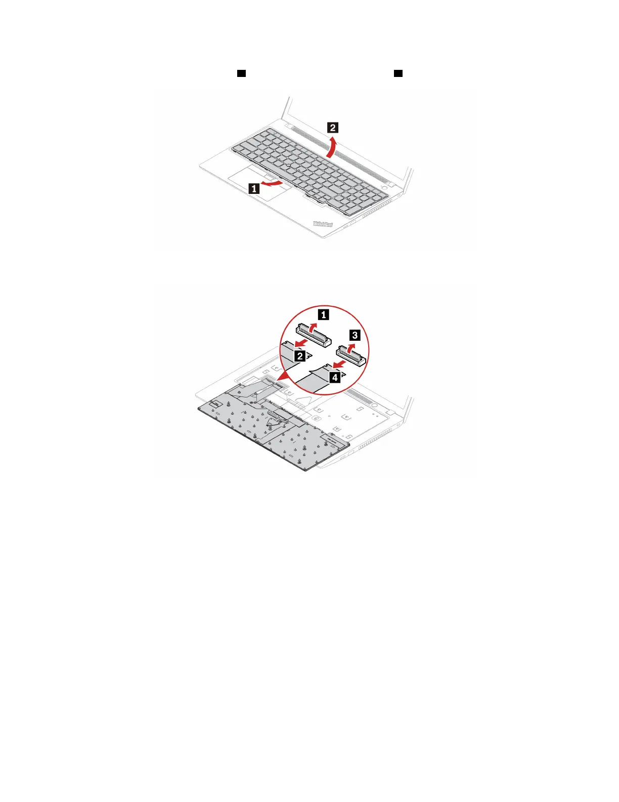 4. Put the keyboard on the palm rest as shown and detach the connectors. Then, remove the keyboard.