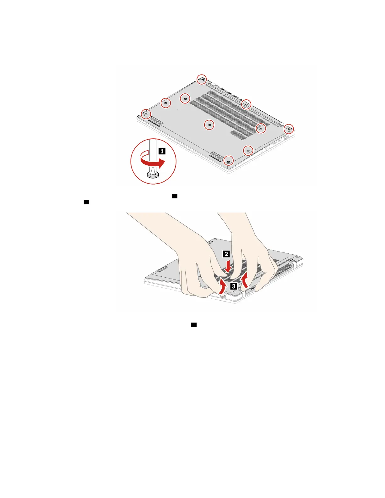 b. Press the base cover assembly 2 and then pull it from the hinge and the Ethernet connector
