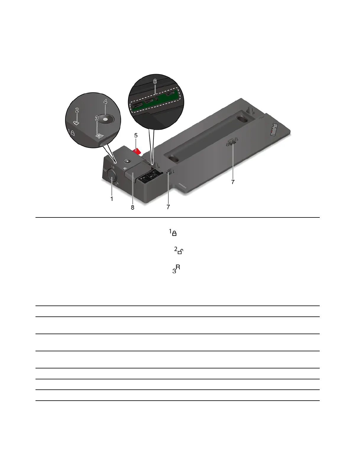Note: The following illustration is based on ThinkPad Basic Docking Station. The ThinkPad Pro Docking