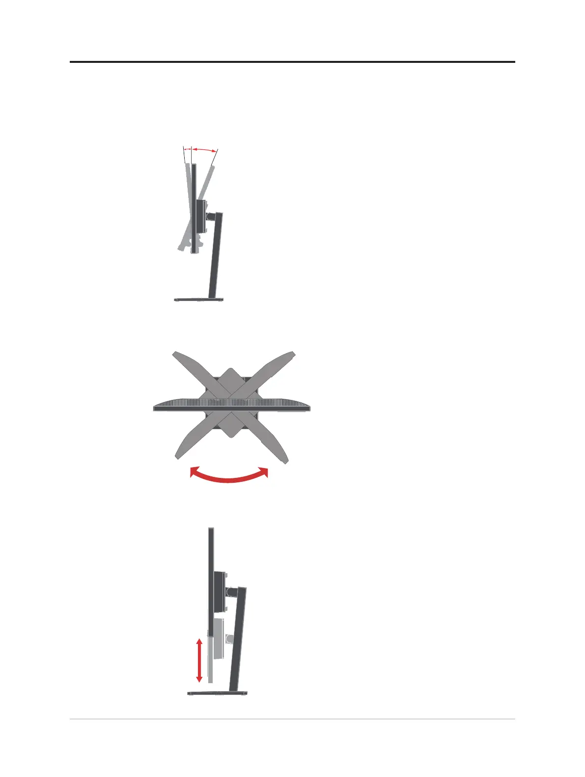 For height adjustment, user needs to press down or lift up the monitor.