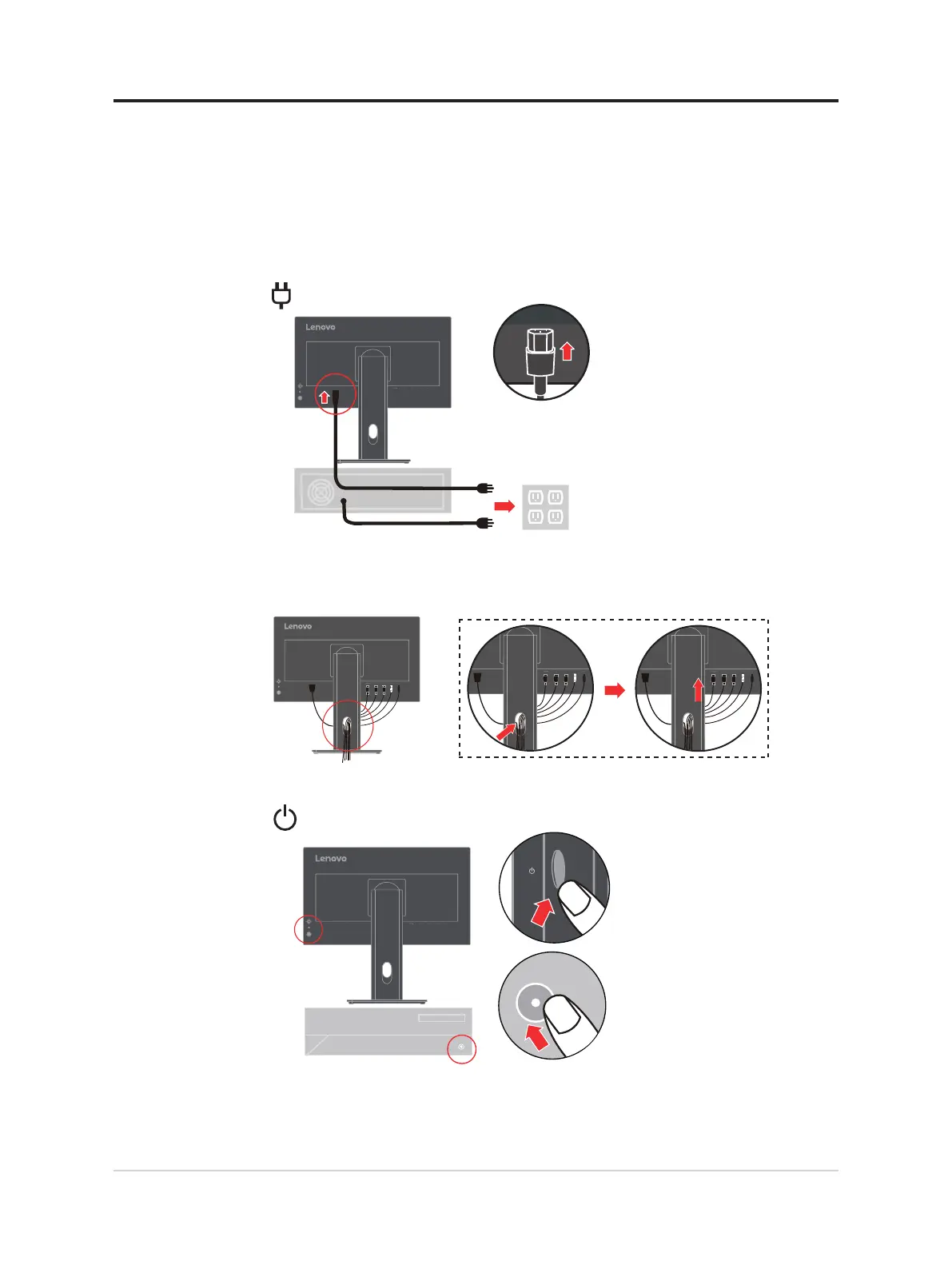 9. Insert the power cord into the monitor, then plug the monitor power cord and the