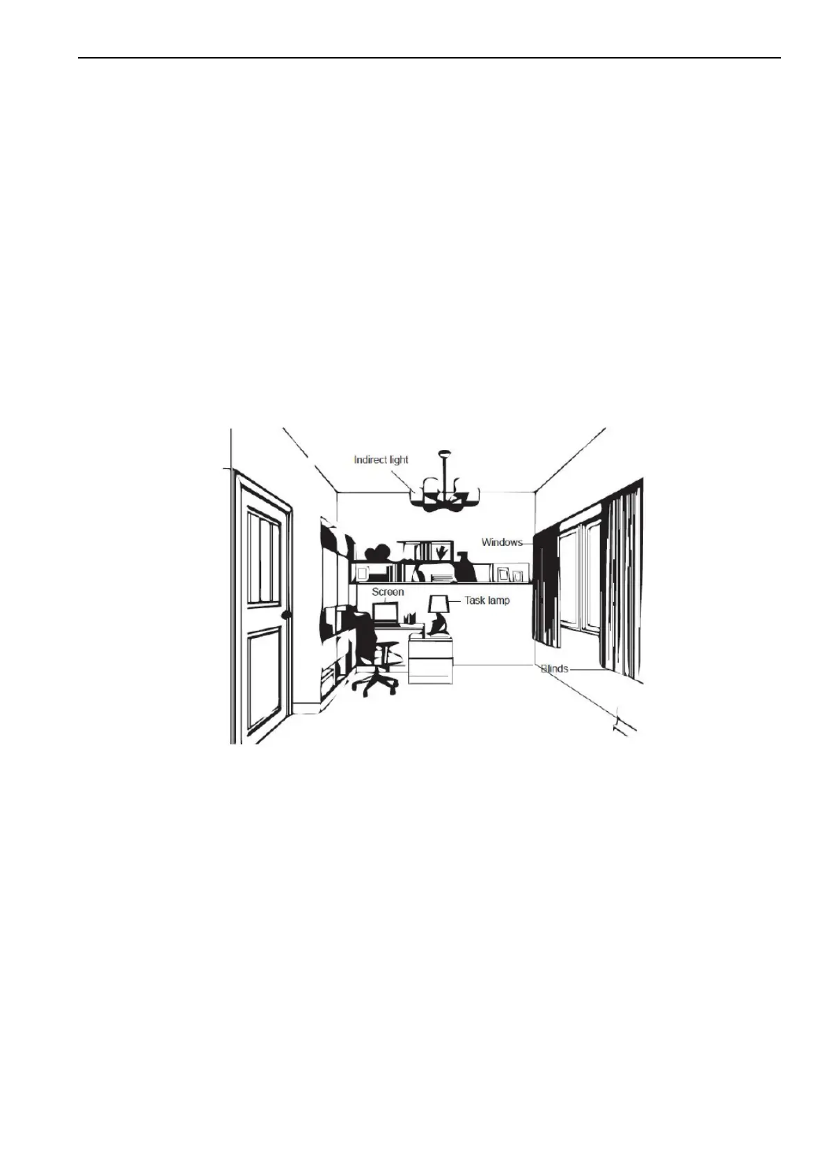 desk work. Recommended lighting arrangement includes positioning work stations away