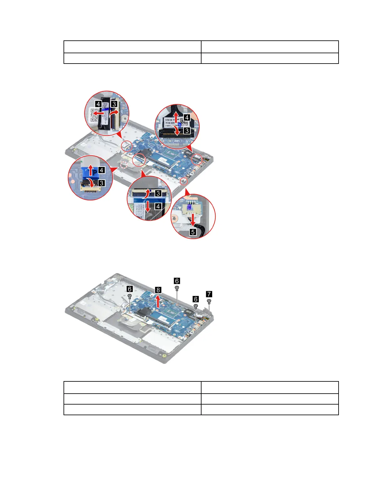 Figure 29. Remove four screws and then remove the system board with touchpad board cable