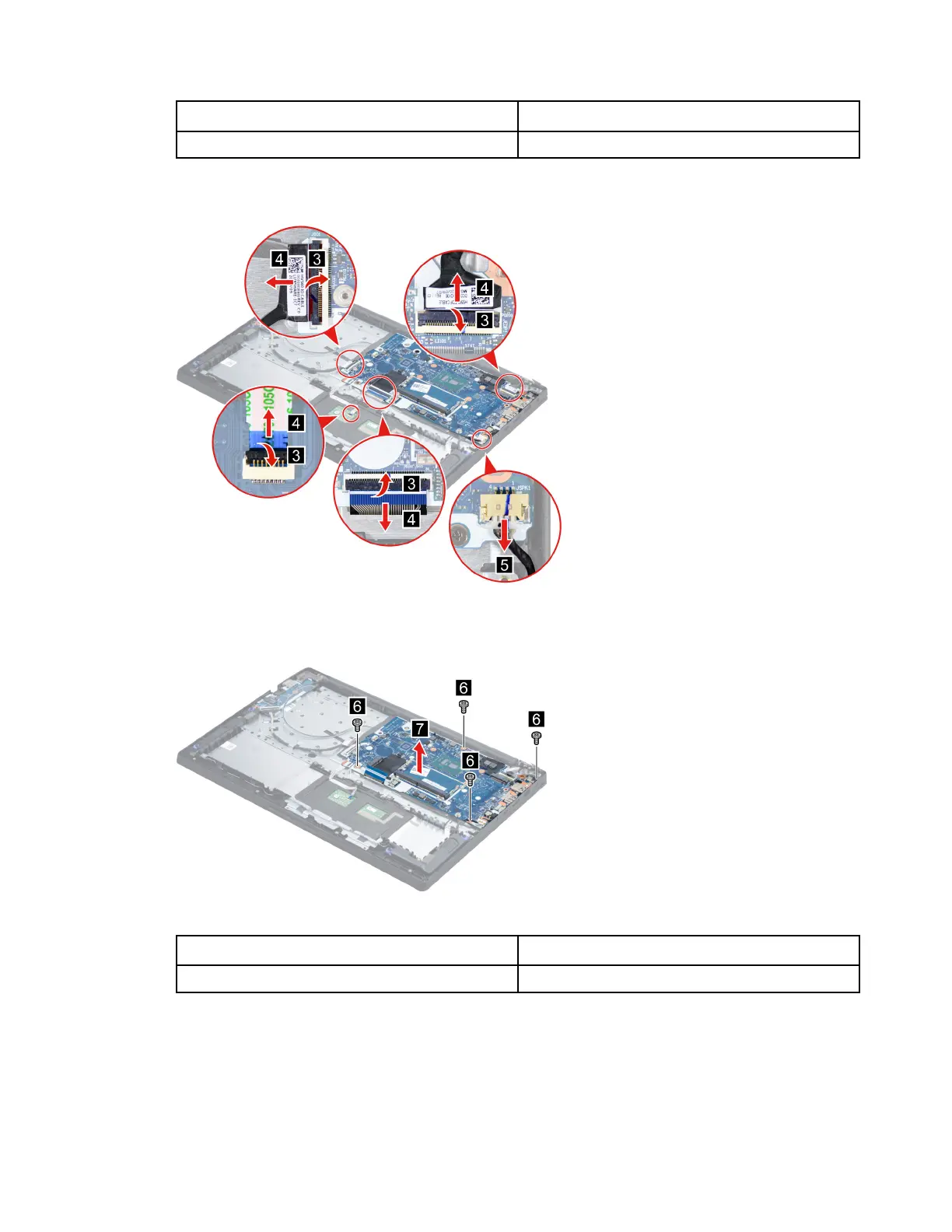 Figure 63. Remove four screws and then remove the system board with touchpad board cable