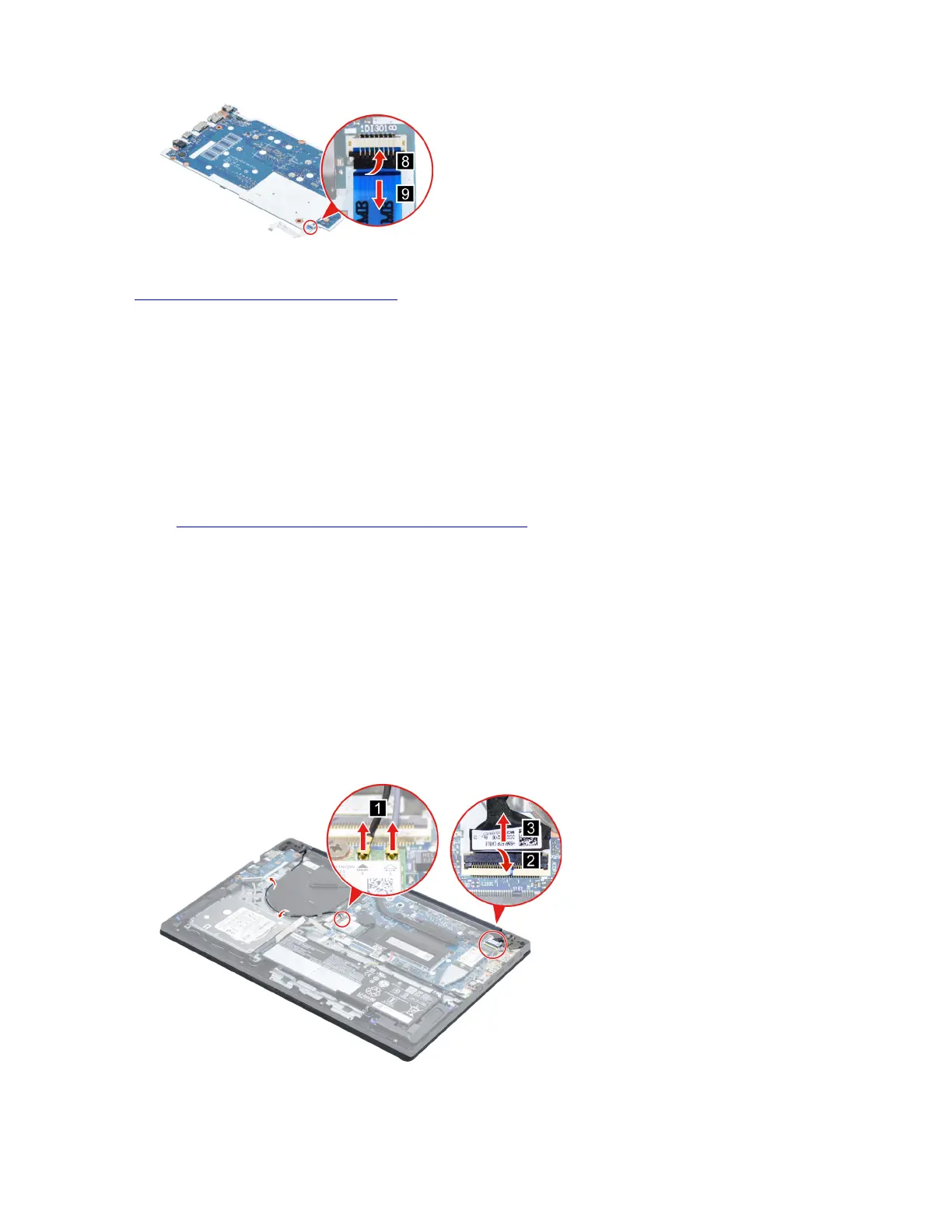 Figure 65. Detach the antenna cable connectors and disconnect the EDP cable