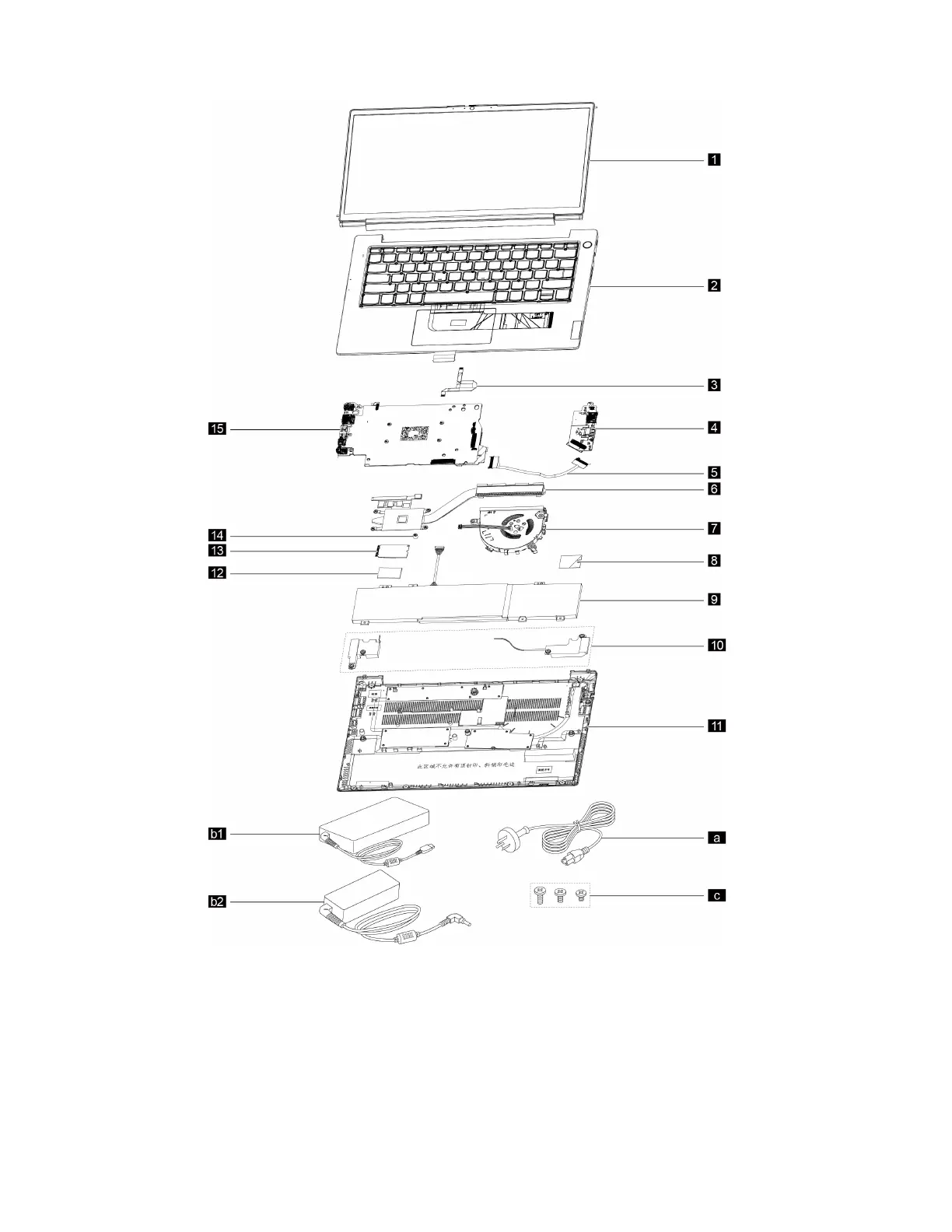 Figure 1. Lenovo V14 G4 AMN, Lenovo V14 G4 AMN 1 and Lenovo V14 G4 AMN 2 exploded view