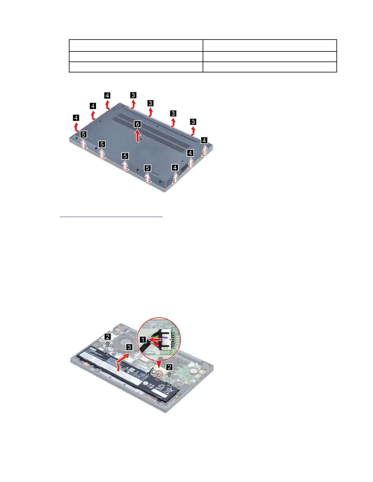 Step 1. Disconnect the battery pack cable from the system board. Remove two screws and then remove