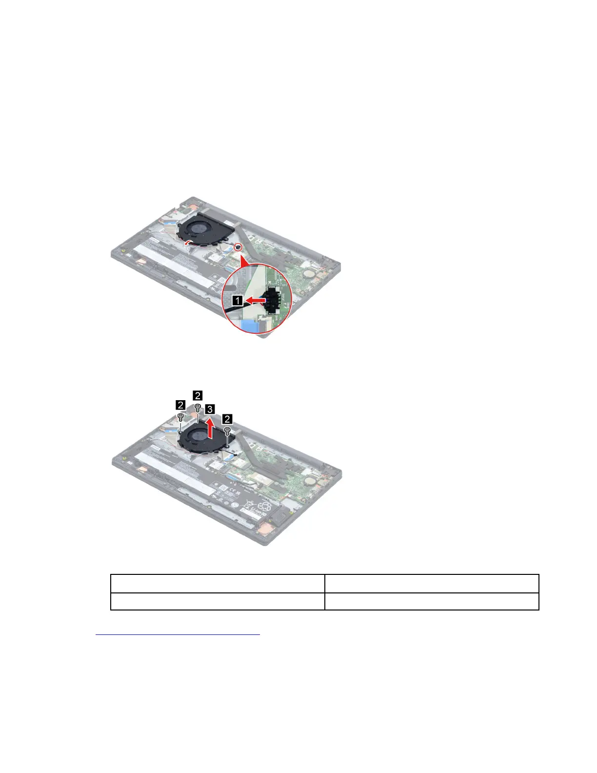 Step 2. Disconnect the fan cable from the system board and then release the antenna cables from the
