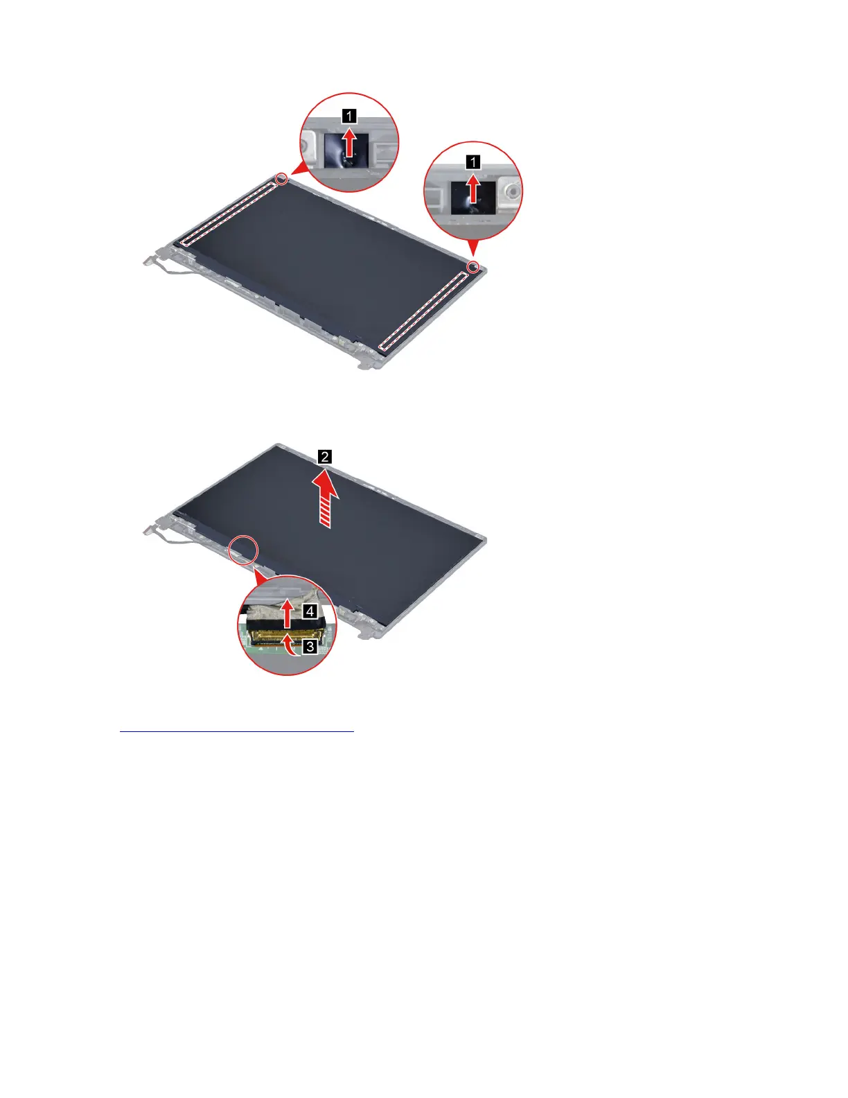 Figure 57. Lift the LCD panel and then disconnect the EDP cable from the LCD panel