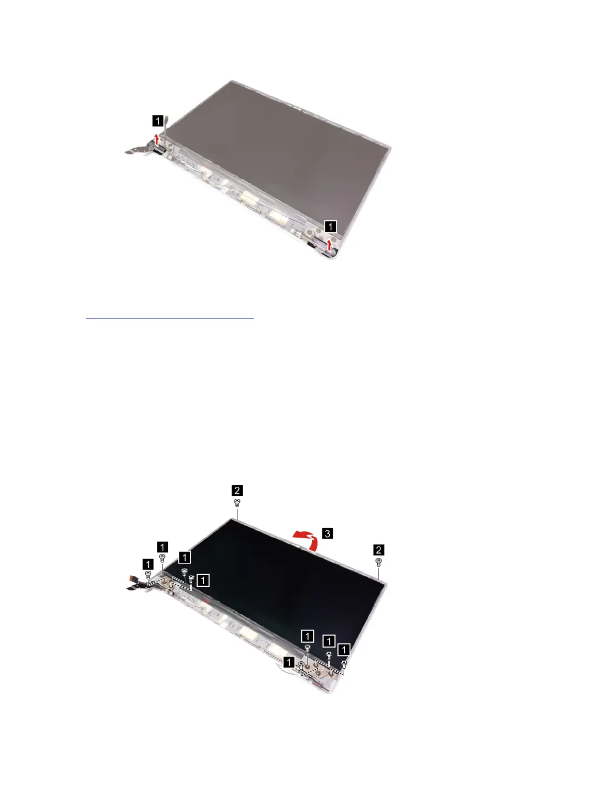 Step 1. Remove ten hinge screws and then carefully lift the LCD panel with hinges from the LCD cover.