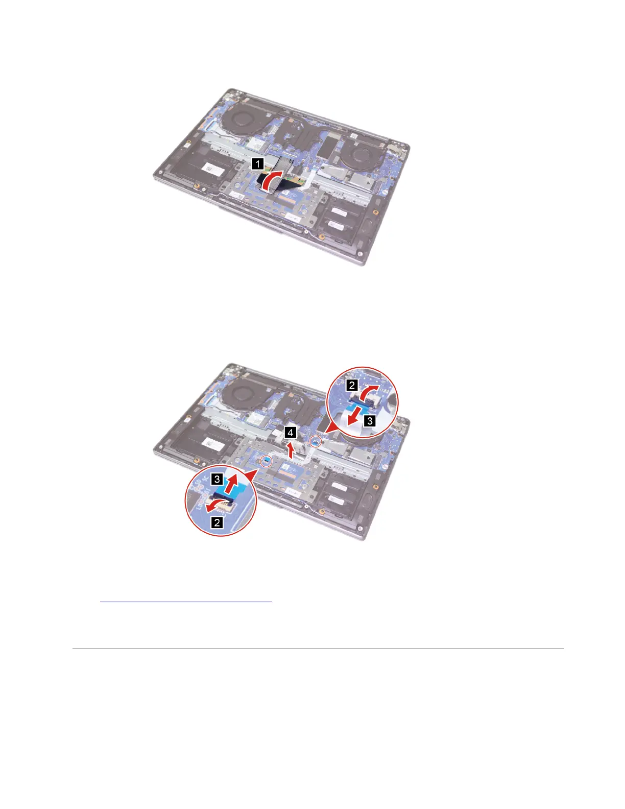 Step 2. Disconnect and remove the touchpad with cable as shown.