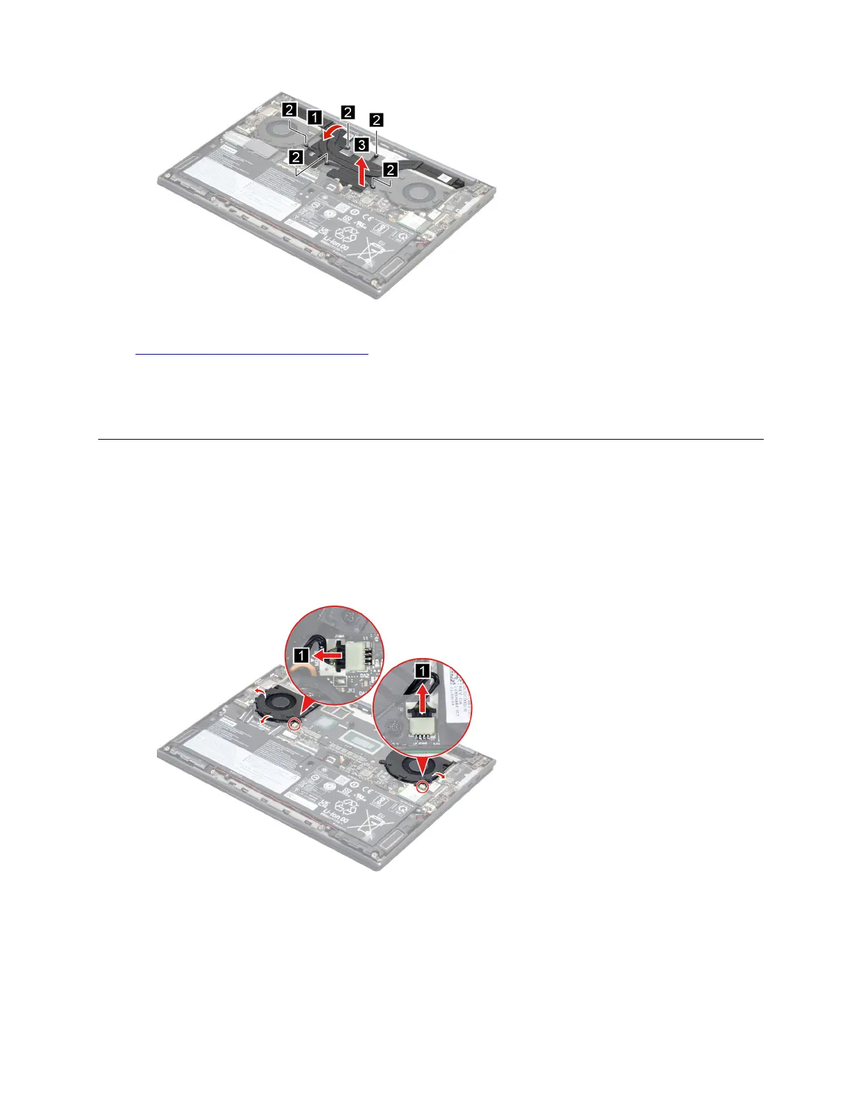 Step 1. Disconnect the fan cables from the system board and then release the antenna cables and EDP