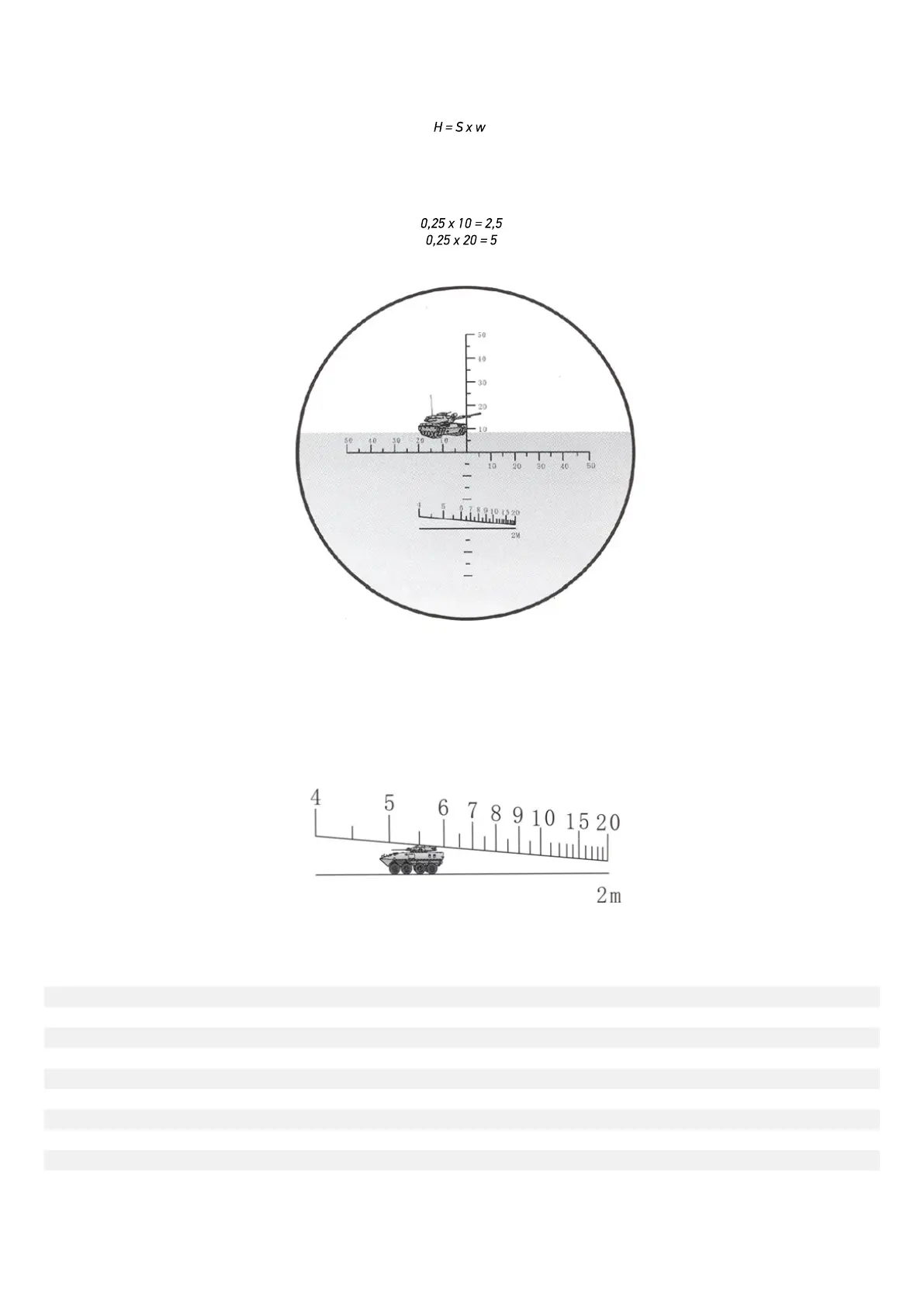 Quando è noto che l’altezza del bersaglio è pari a 2 m, è possibile calcolarne la distanza usando il reticolo aggiuntivo presente nella