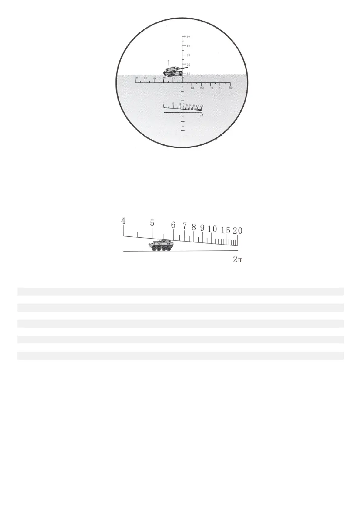 Jeśli wiadomo, że wysokość celu wynosi 2 m, można obliczyć odległość do niego za pomocą dodatkowego celownika w dolnej części