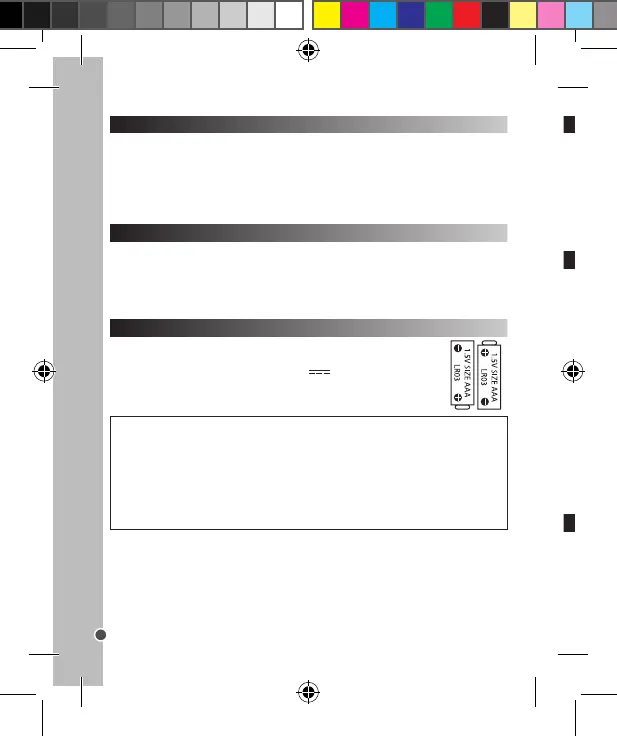 3. Insert 2 x AAA/LR03 1,5V type batteries (not included).