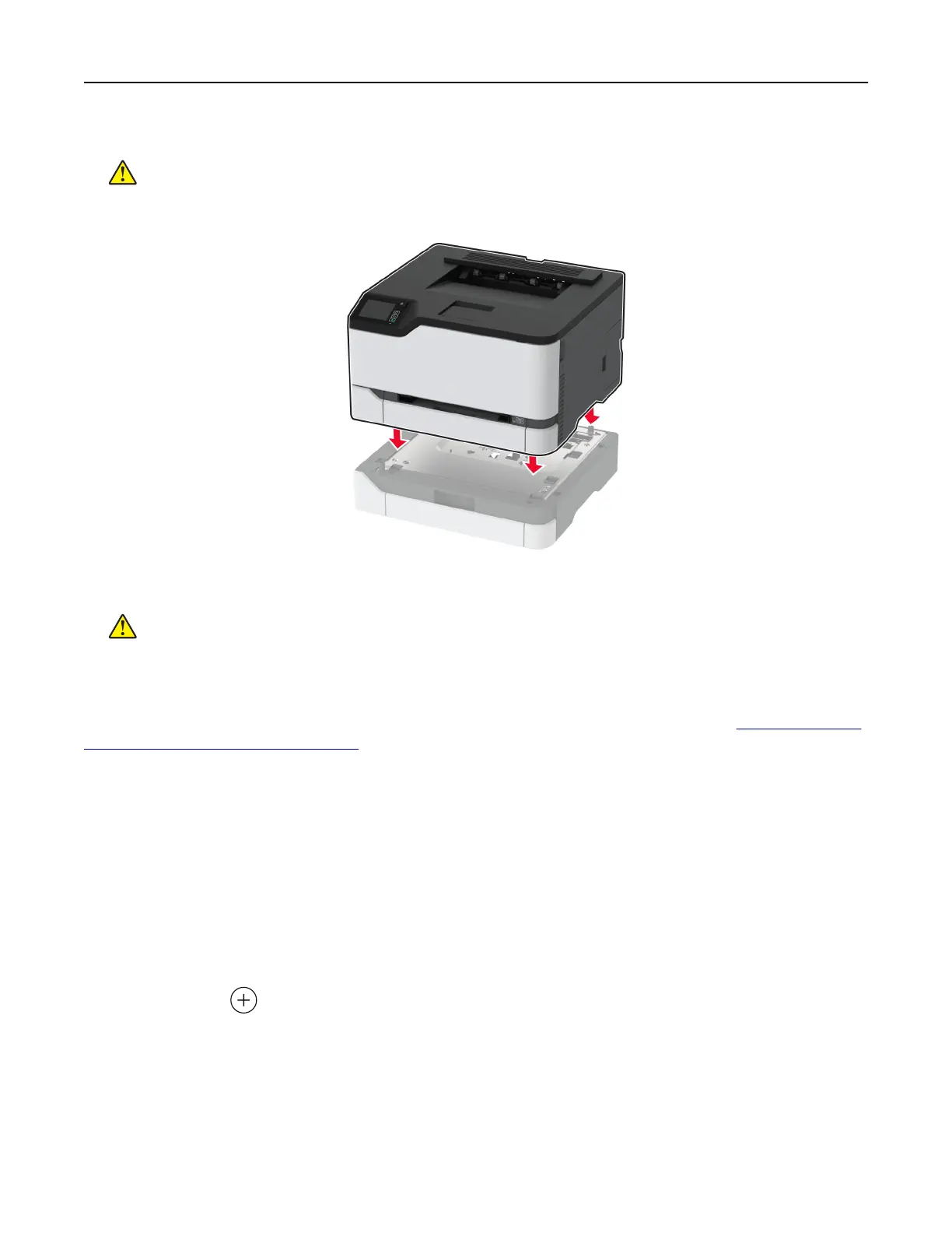 4 Align the printer with the optional tray, and then lower the printer into place.