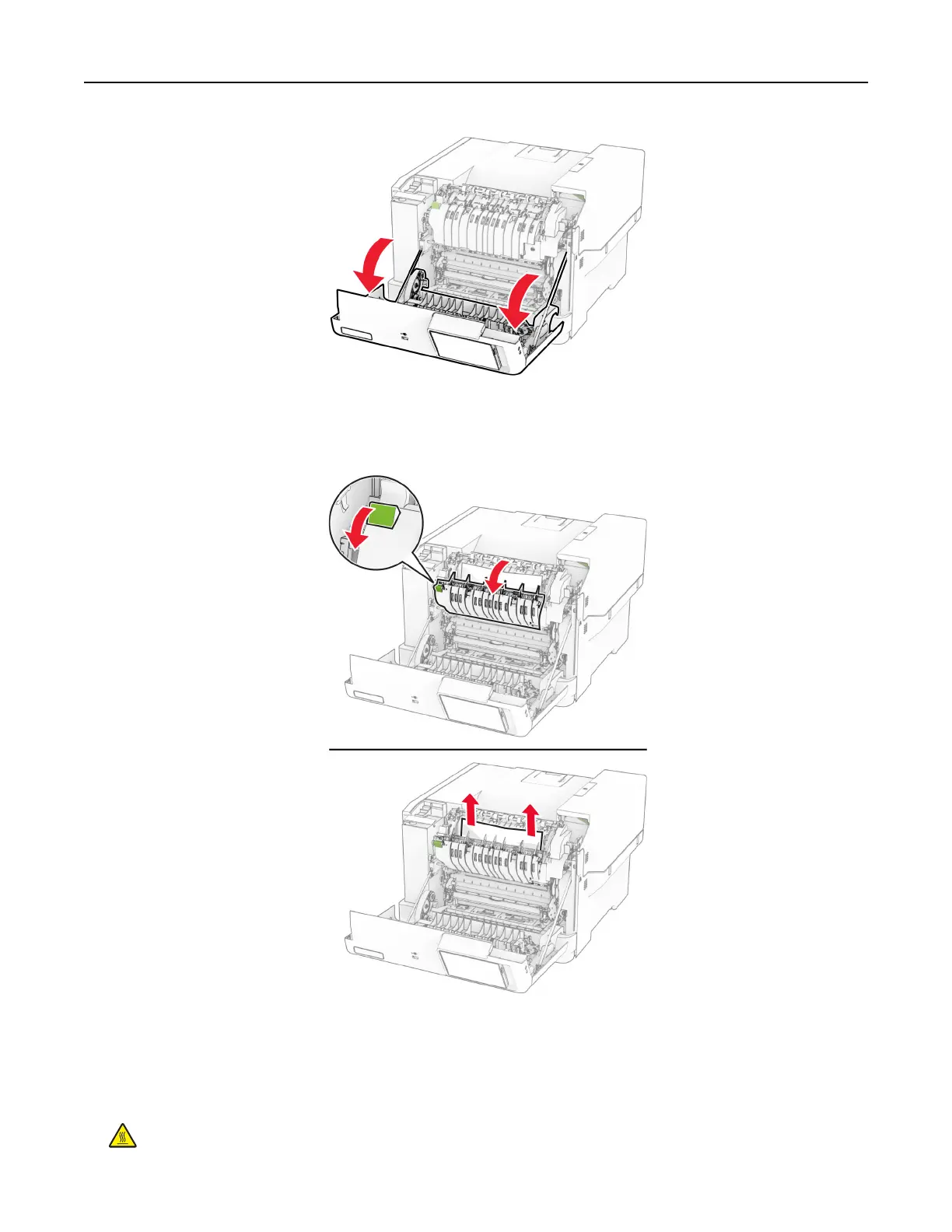 CAUTION—HOT SURFACE: The inside of the printer might be hot. To reduce the risk of injury from a