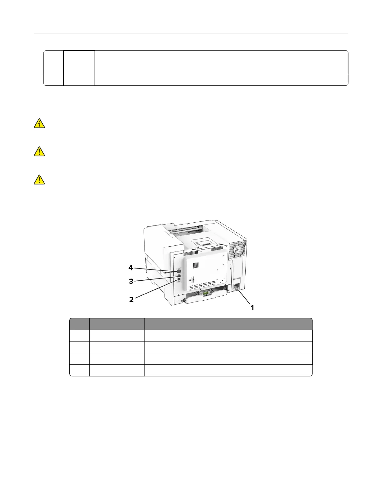4 Ethernet port Connect the printer to a network.