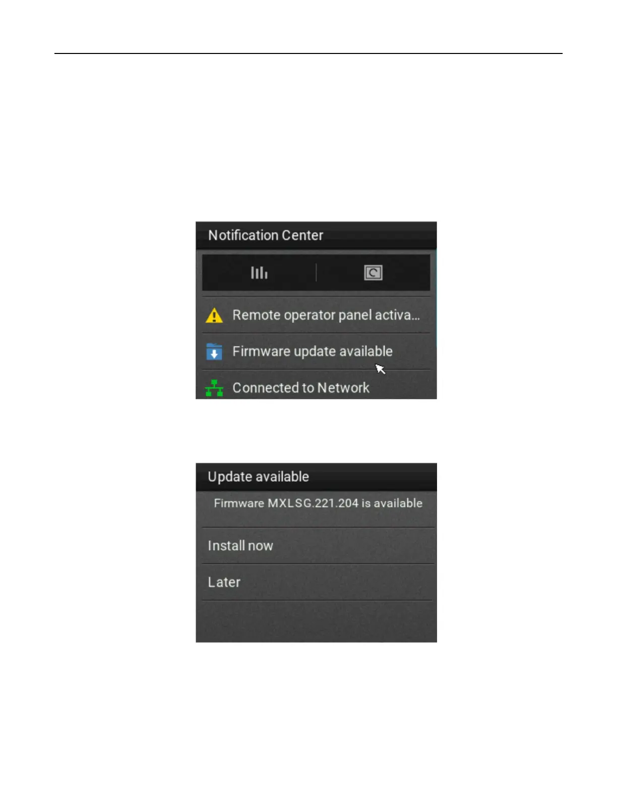1 From the control panel, navigate to the notification center, and then select Firmware update available.