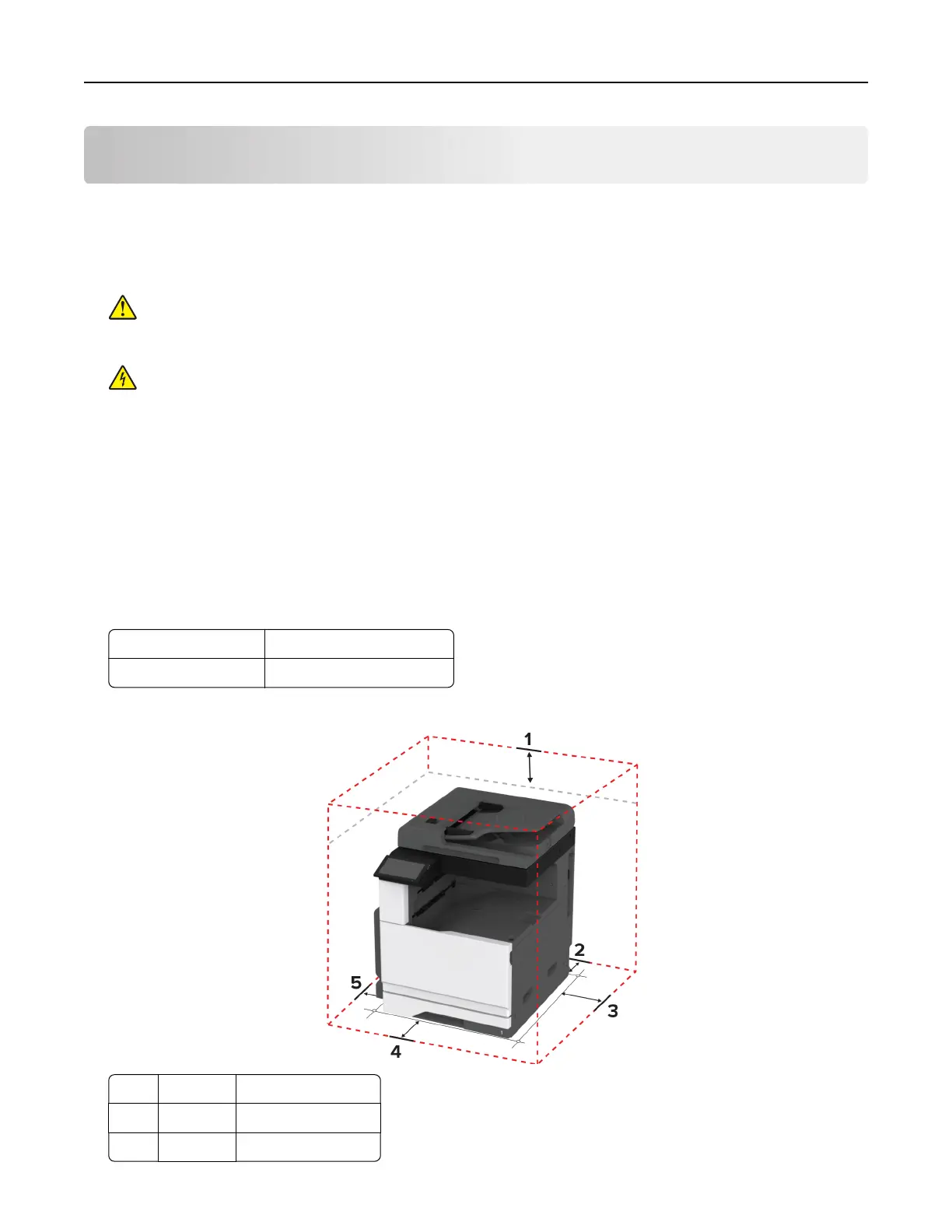• Allow the following recommended amount of space around the printer for proper ventilation: