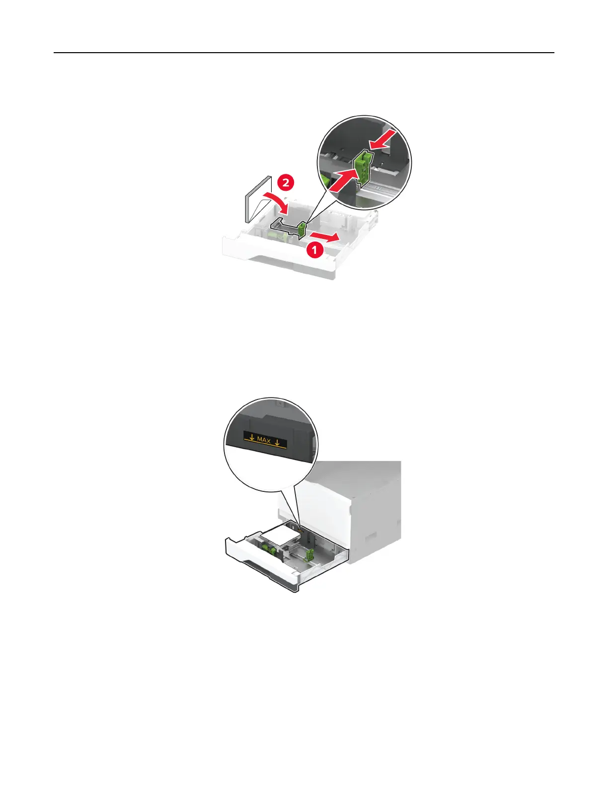 • Make sure that the stack height is below the maximum fill indicator. Overfilling may cause jams.