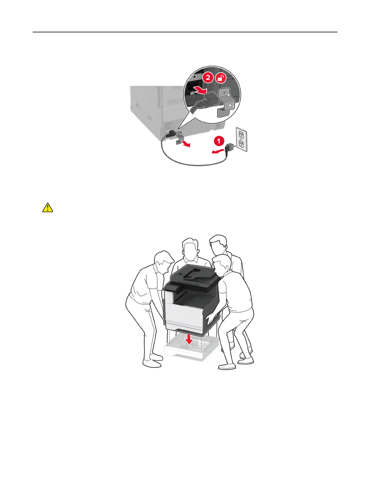 CAUTION—POTENTIAL INJURY: If the printer weight is greater than 20 kg (44 lb), then it may