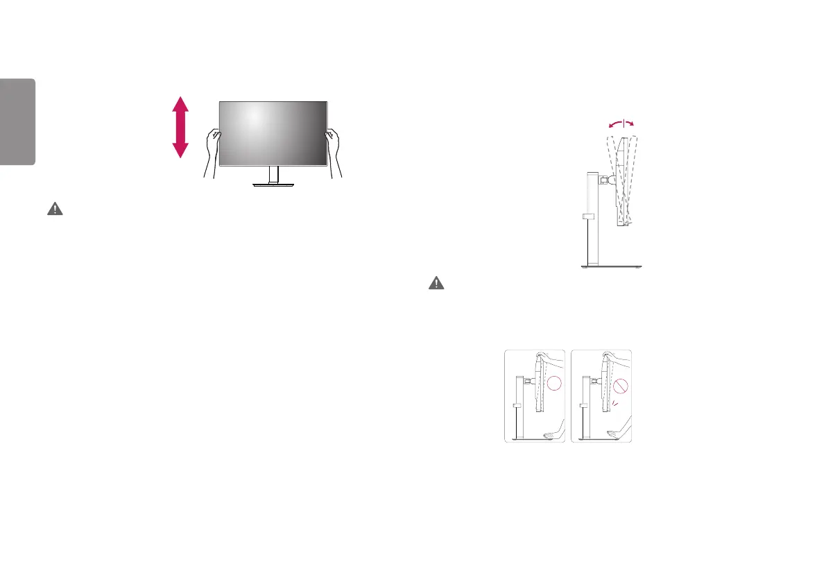 • Raak het scherm niet aan en druk er niet op wanneer u de kijkhoek van de monitor aanpast.
