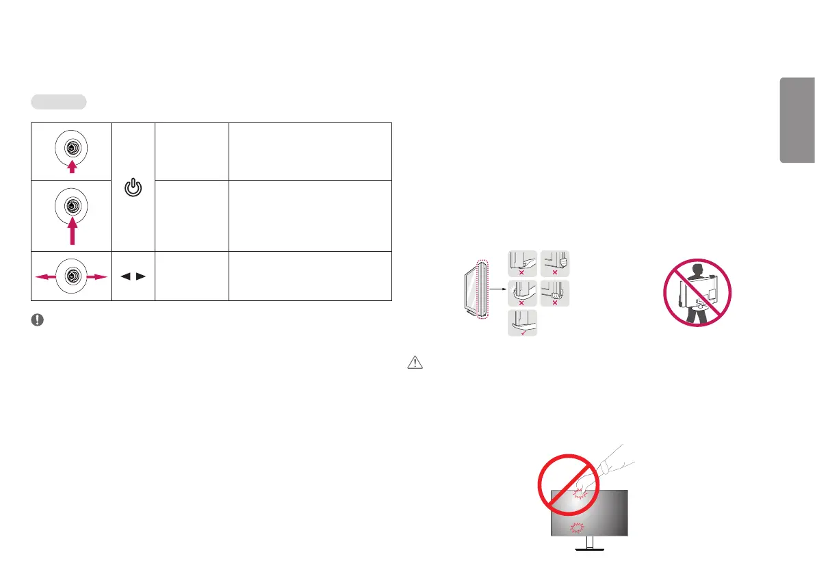 • Houd de onder- en zijkant van de monitor stevig vast. Houd de monitor niet bij het scherm zelf vast.