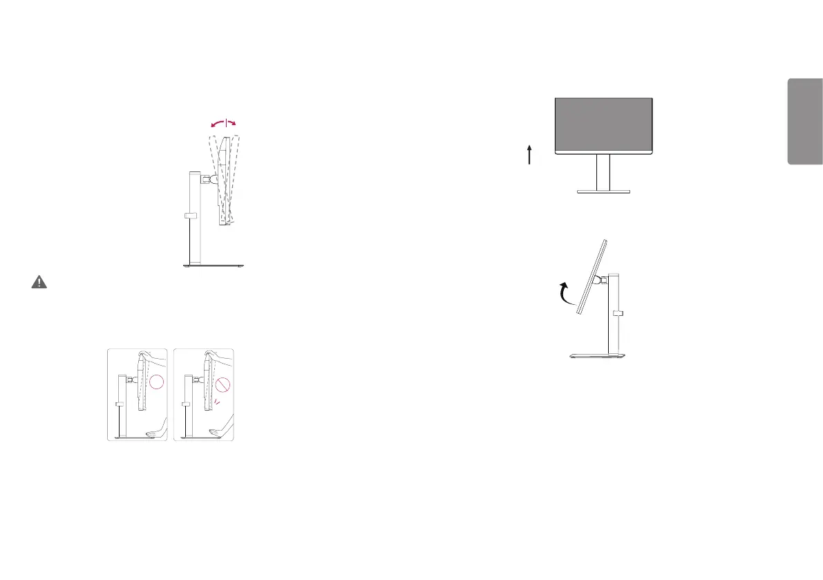 • Raak het scherm niet aan en druk er niet op wanneer u de kijkhoek van de monitor aanpast.