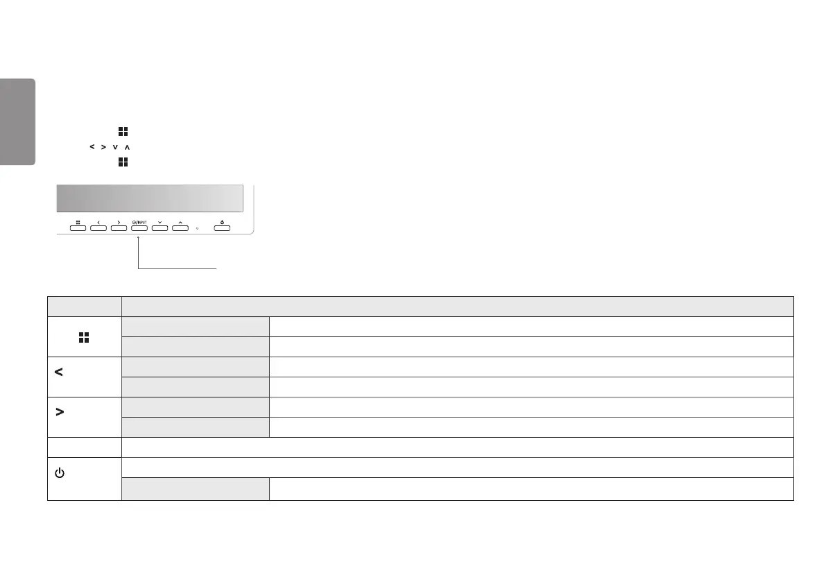 If the menu is inactive Adjusts the volume level of the monitor.