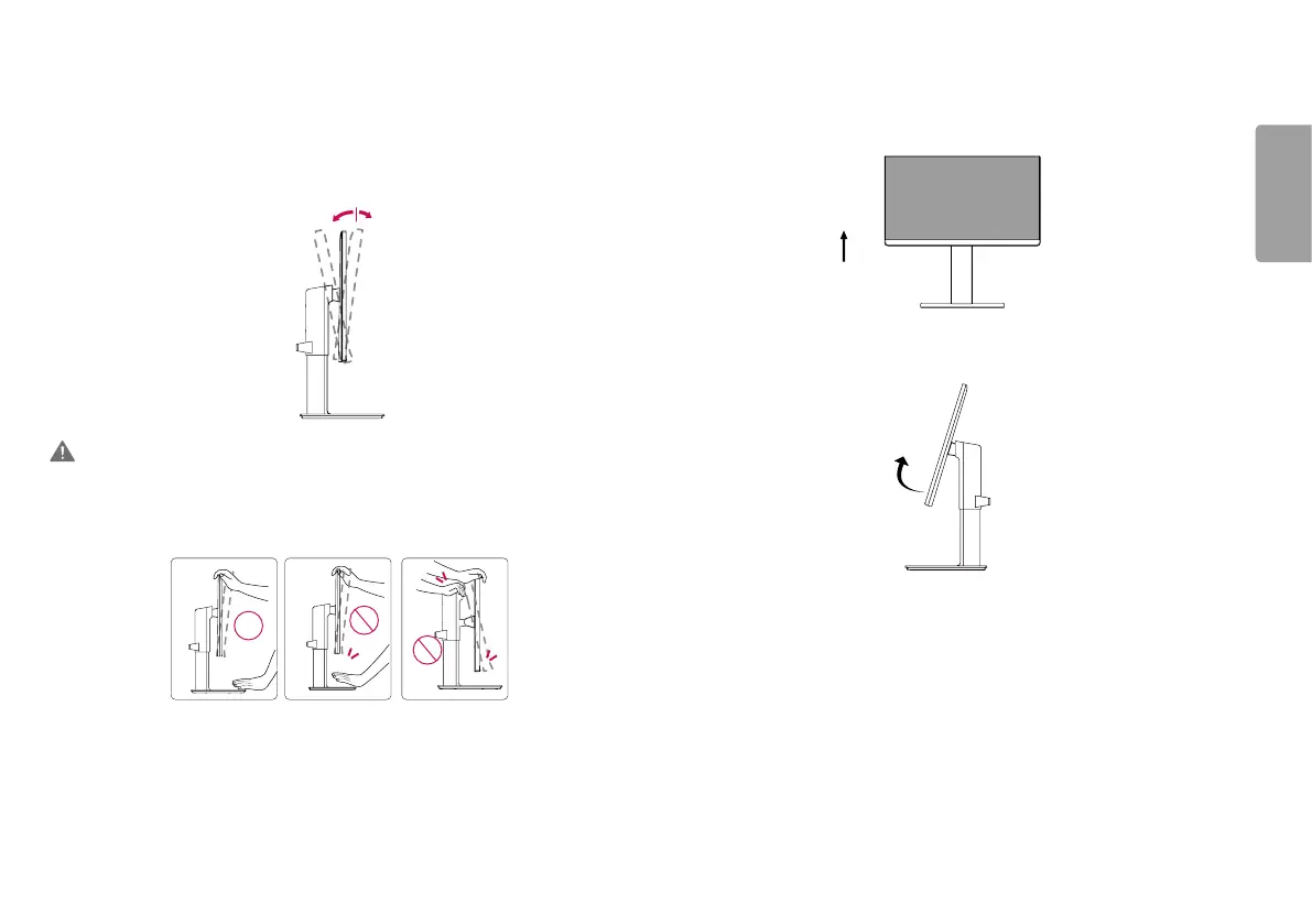 • To avoid injury to the fingers when adjusting the screen, do not hold the lower part of the monitor’s frame as