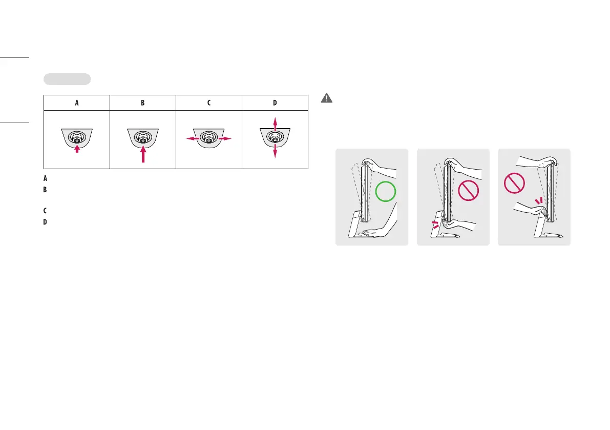 • Be careful not to touch or press the screen area when adjusting the angle of the monitor.