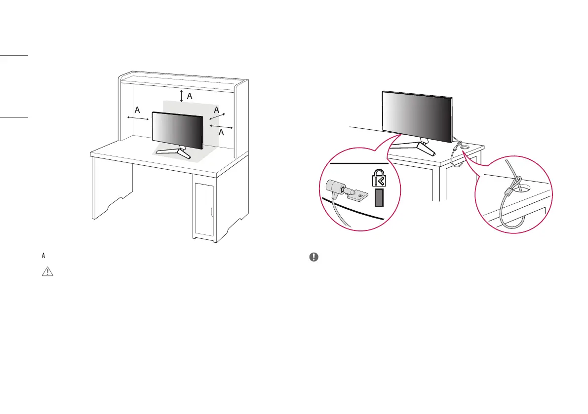 • Lift the monitor and place it on the table in an upright position. Place the monitor at least 100mm