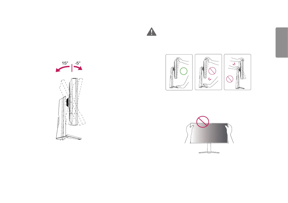 • Be careful not to touch or press the screen area when adjusting the angle of the