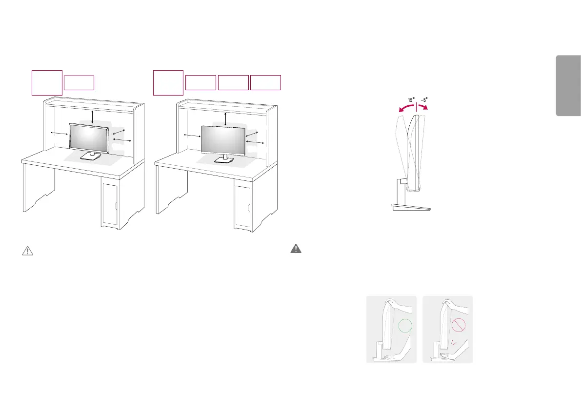 • Be careful not to touch or press the screen area when adjusting the angle of the monitor.