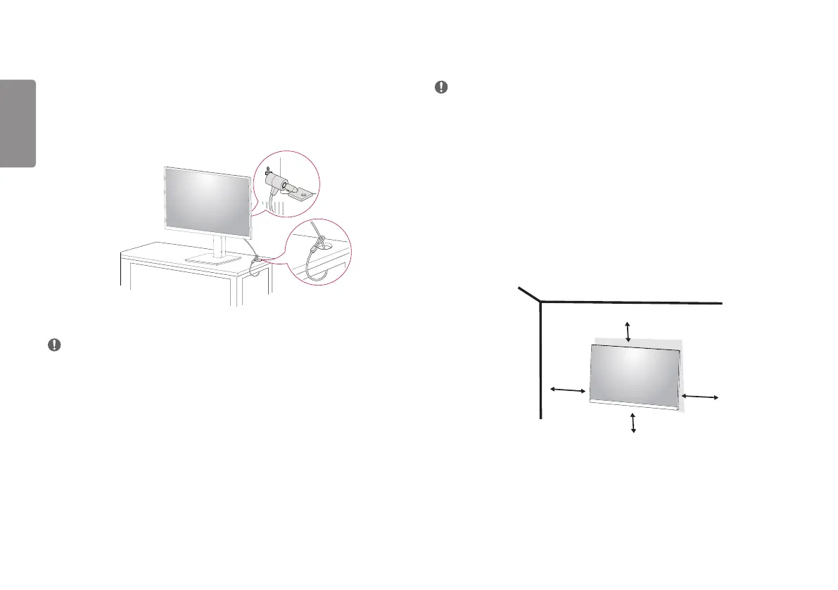 Bevestig de monitor ten minste 100mm van de muur af en laat ongeveer 100mm ruimte aan alle kanten van