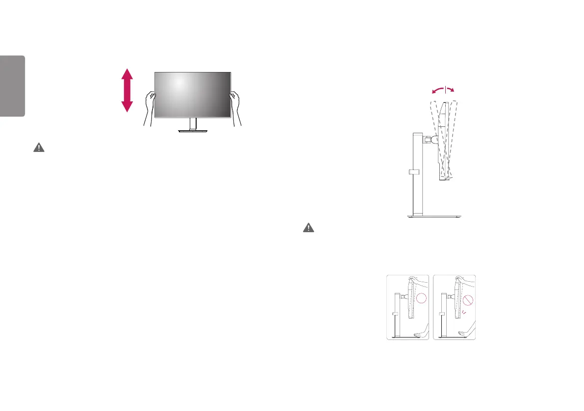 • Raak het scherm niet aan en druk er niet op wanneer u de kijkhoek van de monitor aanpast.