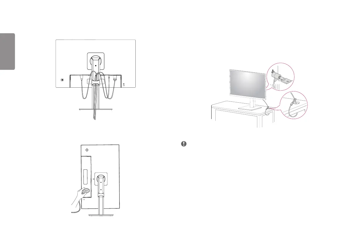 Bevestig de monitor aan een tafel met de kabel van het Kensington-veiligheidssysteem.