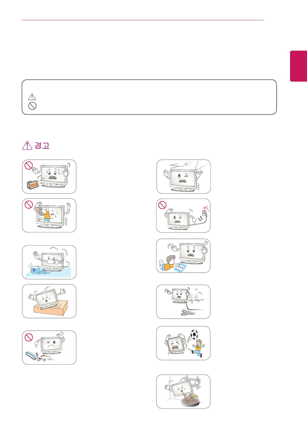 다음에 표시되어 있는 안전에 관련된 주의사항들은 제품을 안전하고 정확하게 사용하여 예기치 못한 위험이나 손해를 사전에 방